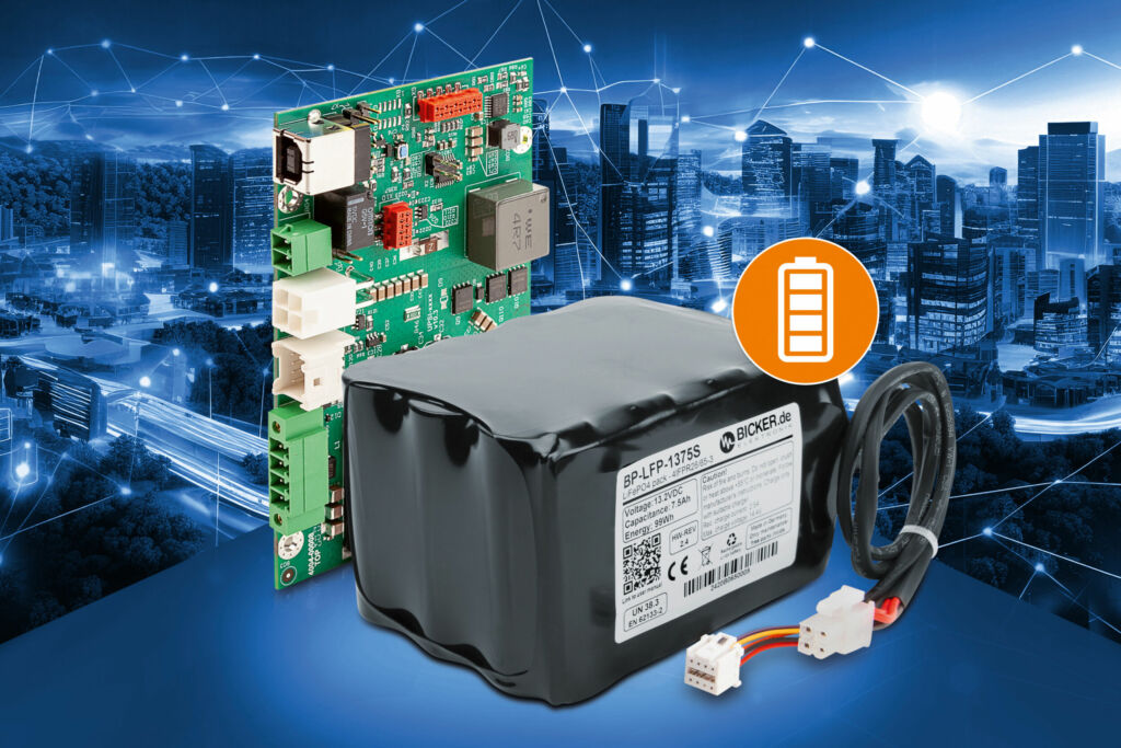 Bicker Elektronik stellt eine modular integrierbare DC-USV-Lösung für sicherheitskritische Systeme in der Industrie, Medizintechnik und smarter Infrastruktur vor. Die 24VDC Notstromversorgung mit CE-zertifiziertem LiFePO4-Batteriepack gewährleistet bei Stromausfall, Spannungseinbruch oder Flicker den ausfallsicheren Betrieb und vermeidet somit Systemausfälle und Datenverlust. Sie besteht aus der Lade- und Steuereinheit Bicker UPSI-2406 sowie dem leistungsstarken LiFePO4-Batteriepack Bicker BP-LFP-1375S (99Wh). Die Lösung gewährleistet den zuverlässigen Schutz von Embedded-IPCs, Mess-, Regel- und Steuerungstechnik, Sensoren, Aktoren, Kameras, Sicherheitstechnik und vielen weiteren kritischen Applikationen. Die USV-Management-Software UPScom mit benutzerfreundlicher Oberfläche für intuitive Konfiguration und Monitoring steht kostenlos zum Download zur Verfügung. Der CE-zertifizierte BP-LFP-1375S (99Wh) zeichnet sich durch eine stabile Batteriechemie, eine Lebensdauer von mindestens zehn Jahren und bis zu 6.000 Vollzyklen aus.