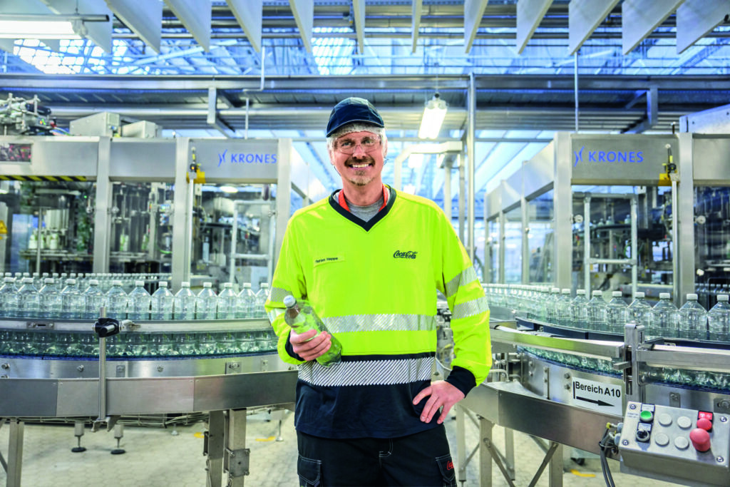‚Handeln. Verändern‘ ist der ‚Aktionsplan Nachhaltigkeit‘ von Coca-Cola Europacific Partners (CCEP) überschrieben – größter unabhängiger Abfüller von Erfrischungsgetränken der Coca-Cola Company. Die Ziele sind ambitioniert. Bis 2030 will der Getränkehersteller in Deutschland im Werk Genshagen und an 13 weiteren Standorten die Treibhausgasemissionen um 30 Prozent gegenüber 2019 reduzieren. Bis 2040 wird Klimaneutralität angestrebt. Der Fokus liegt dabei auf Verpackung und Rohstoffen. „Wir fahren z.B. das Mehrweggeschäft weiter hoch und streben bei Airbag-Verpackungen eine Quote von 100 Prozent recyceltem PET an. Neun Prozent des CO2-Ausstoßes entfallen auf die Produktion, wo wir ebenfalls nach Optimierungspotenzialen suchen“, erklärt Florian Happe, Quality and Food Safety Manager und bis 2021 für das Thema Energiemanagement bei CCEP zuständig.
