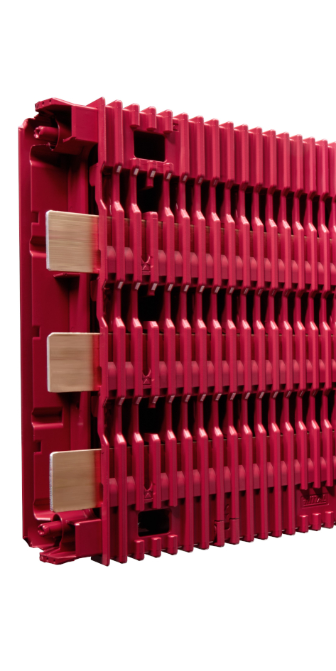 Die Kombination aus neu gedachter Mechanik und digitaler Integration macht das möglich, weil sie schon in der Planung den Prozess verändert. Bei der Montage setzt sich das fort. Ein Beispiel: Halterplanung ist jetzt Vergangenheit. Die Sammelschienen der neuen Plattform müssen nicht mehr aufwändig dimensioniert werden. Bislang wurden die Flachkupferschienen mit Haltern je nach geforderter Kurzschlussfestigkeit im spezifischen Abstand montiert. An diese Stellen passten allerdings keine Aufbau-Komponenten mehr. Den Platzverlust und die verfügbaren Aufrastbreiten, galt es schon bei der Planung zu berücksichtigen. Die offen liegenden Kontakte stellten außerdem für das Betriebspersonal eine potenzielle Gefahr dar. Berührungsschutz-Abdeckungen wurden daher zeitaufwändig zurechtgesägt. Im Schnitt fielen dadurch pro System auch noch 1,9kg Abfall an überschüssigem Kunststoff an – weder praktisch noch ökologisch. Das hat Rittal abgeschafft. Da im neuen Sammelschienensystem die Kupferschienen ohne spezielle Halterungen direkt im Board verbaut sind, lassen sich die Aufbau-Komponenten einfach durchgängig planen und per Klick montieren. Durch die standardisierte Bauform kann Rittal das gesamte System auch schon auf eine Kurzschlussfestigkeit bis 65kA vorprüfen. Geeignet ist RiLineX für Anwendungen im Bereich bis 1.000V AC und für Gleichstrom bis ±1.500V DC.