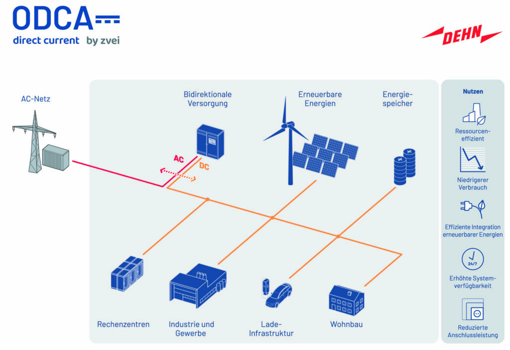 Die DC-Technologie spielt in der modernen Energielandschaft eine Schlüsselrolle. Ob Photovoltaiksysteme, Batteriespeicher, Ladesäulen – schon lange befasst sich Dehn mit dem Schutz von DC-Systemen. Das Engagement des Unternehmens in der Open Direct Current Alliance markiere daher einen weiteren Schritt im Bestreben des Blitz- und Überspannungsschutzspezialisten, die Zukunft der Elektro-Branche durch fortschrittliche und nachhaltige Lösungen mitzugestalten. Im Vorfeld hat Dehn bereits am Forschungsprojekt DC-Industrie teilgenommen, das die Vorteile und Potenziale von Gleichstromtechnologien in industriellen Anwendungen untersucht hat. „Unser Beitritt zur Open DC Alliance symbolisiert einmal mehr unser Engagement für die Förderung nachhaltiger und innovativer Energielösungen,“ so Christian Höhler, CTO bei Dehn. „Wir freuen uns darauf, gemeinsam mit anderen Branchenführern an der Spitze der DC-Technologie zu stehen und die Zukunft der Energieversorgung aktiv mitzugestalten.“ Die Open DC Alliance ist ein führendes Konsortium, das sich der Förderung und Standardisierung von Gleichstromtechnologien widmet. Durch die Mitgliedschaft in dieser Allianz wird Dehn zur Entwicklung und Implementierung zukunftsweisender DC-Lösungen beitragen, die Effizienz und Umweltfreundlichkeit in der Energieversorgung verbessern. Gleichstromtechnologien erzielen erhebliche Umweltvorteile. Sie reduzieren Energieverluste und erhöhen die Energieeffizienz, was wiederum den CO2-Ausstoß reduziert und eine nachhaltigere Nutzung von Ressourcen erlaubt.