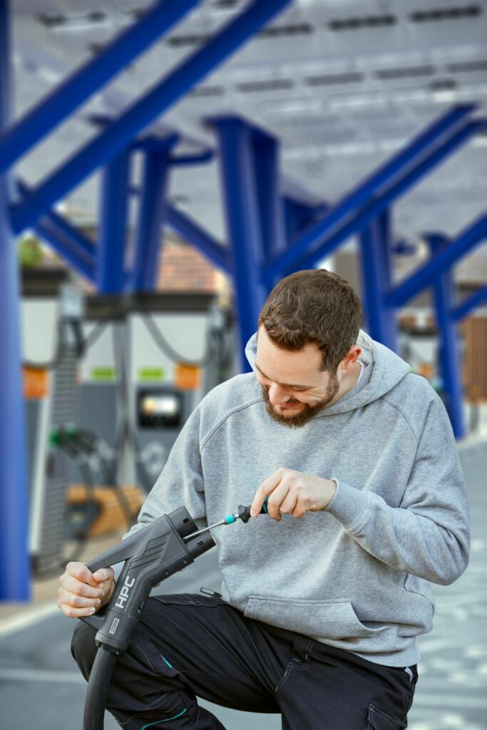 Trotz robuster Materialien unterliegen Ladestecker an halböffentlichen oder öffentlichen Ladesäulen regelmäßigen Wartungsintervallen, auch aufgrund von unsachgemäßem Umgang. Die Beschädigungen treten dabei meist am Steckgesicht auf. Mithilfe von Reparatur-Kits können Steckgesichtsrahmen und Leistungskontakte am Ladestecker schnell und einfach ausgetauscht werden. Das macht die DC-Ladekabel Charx Connect wartungsfreundlich, spart Zeit und Kosten und erhöht die Verfügbarkeit von Ladeinfrastruktur im Feld. Ein aufwändiger Austausch des kompletten Ladekabels entfällt somit. Diese Art der Wartung ist nicht nur wirtschaftlicher, sondern auch nachhaltiger.